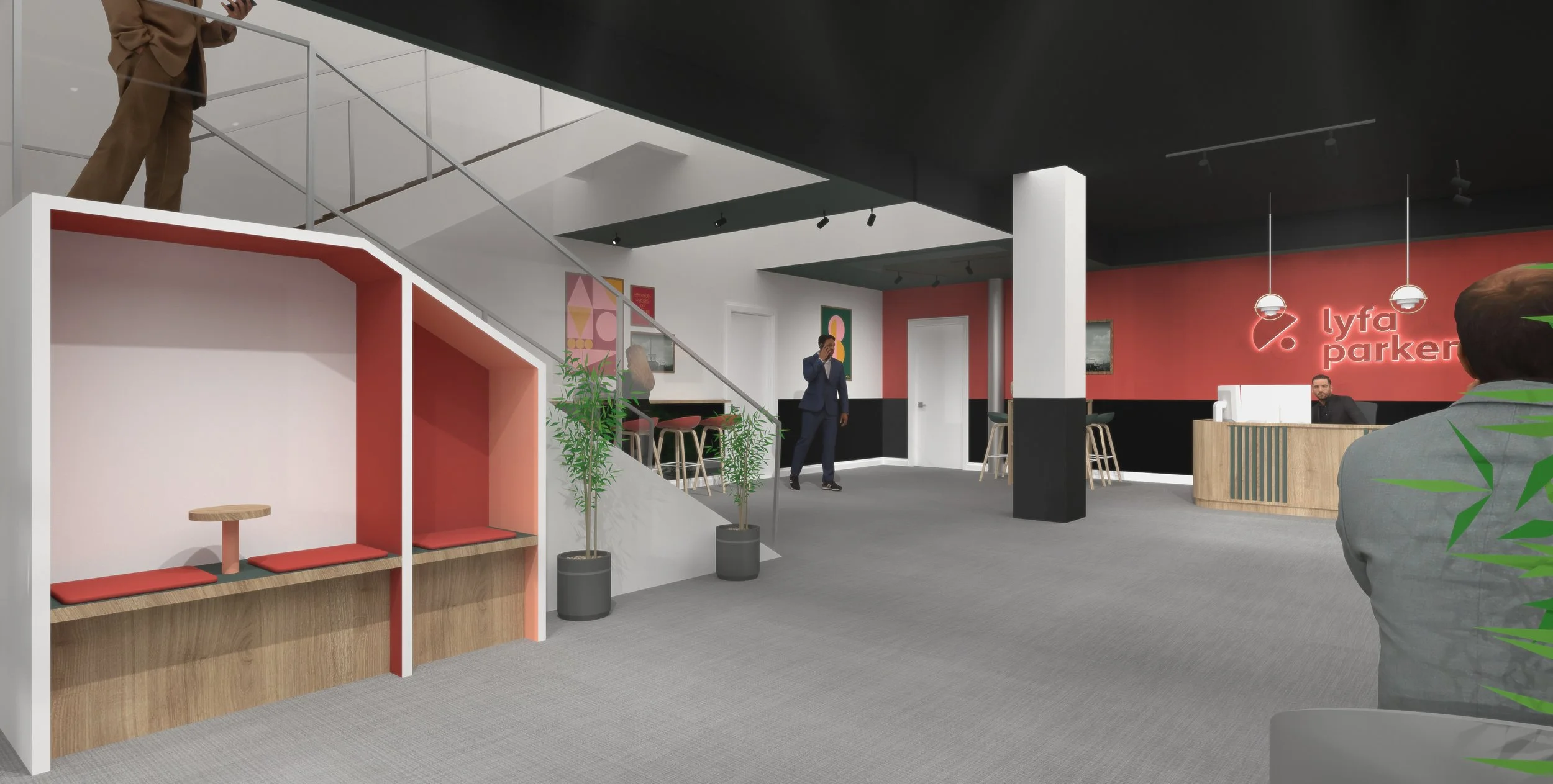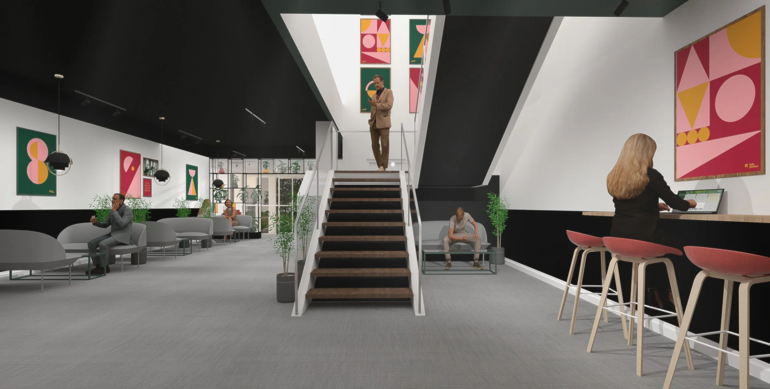 After restoring the entire building Lyfa parken and Lyfa offices desired their own distinct identity and interior atmosphere.